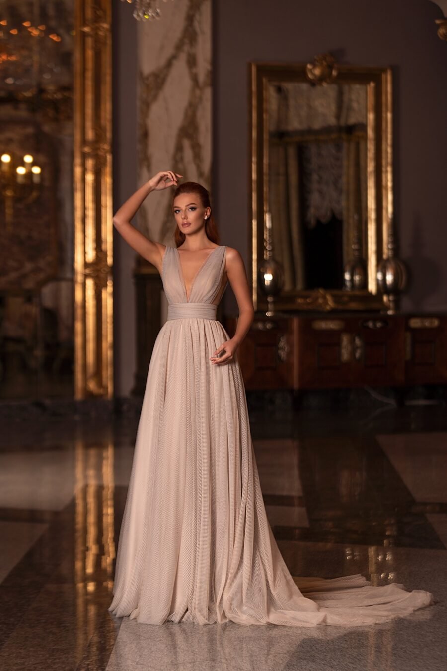 Floor length evening dress «20310» with open back