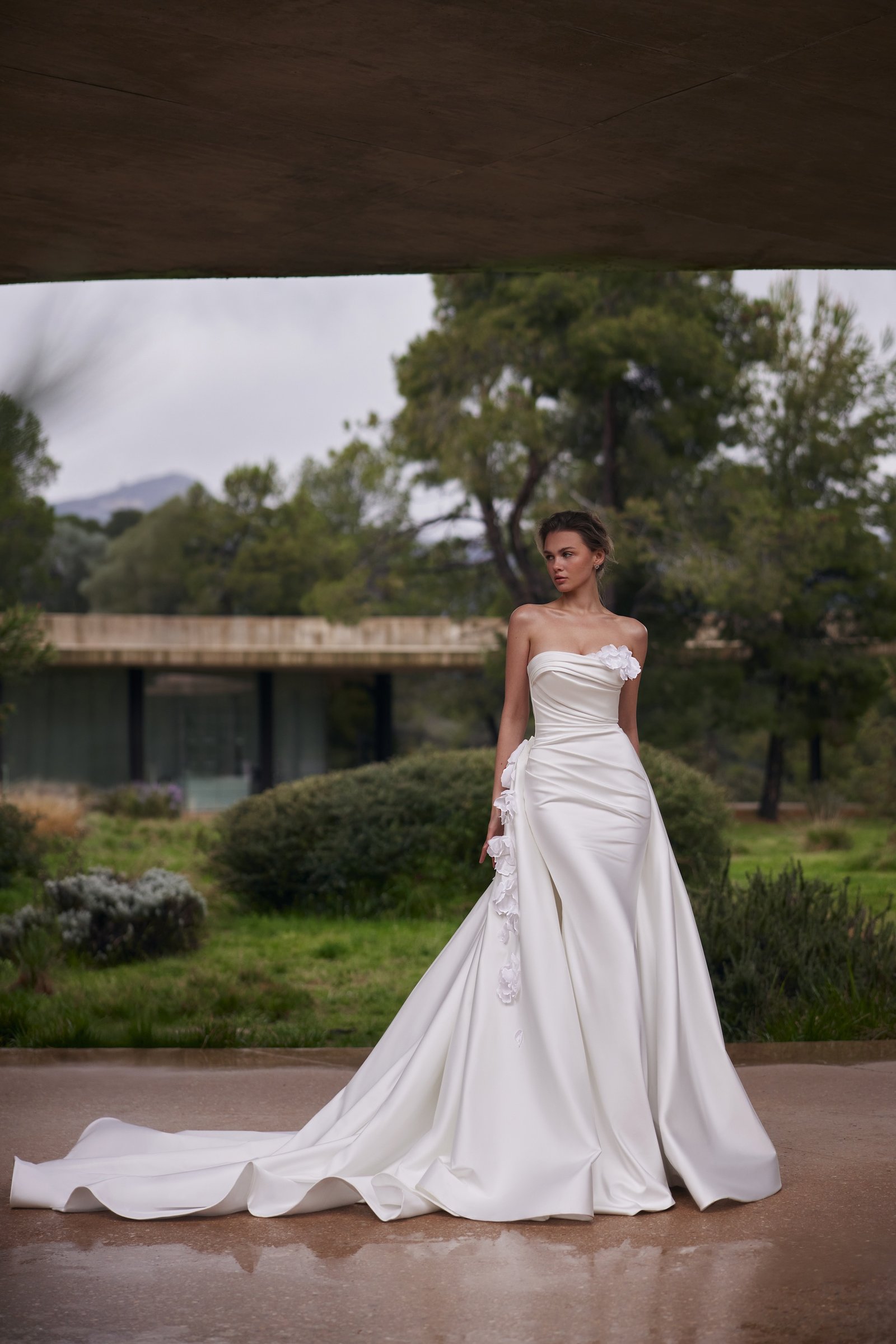 Strsight wedding dress «Capella» with detachable overskirt