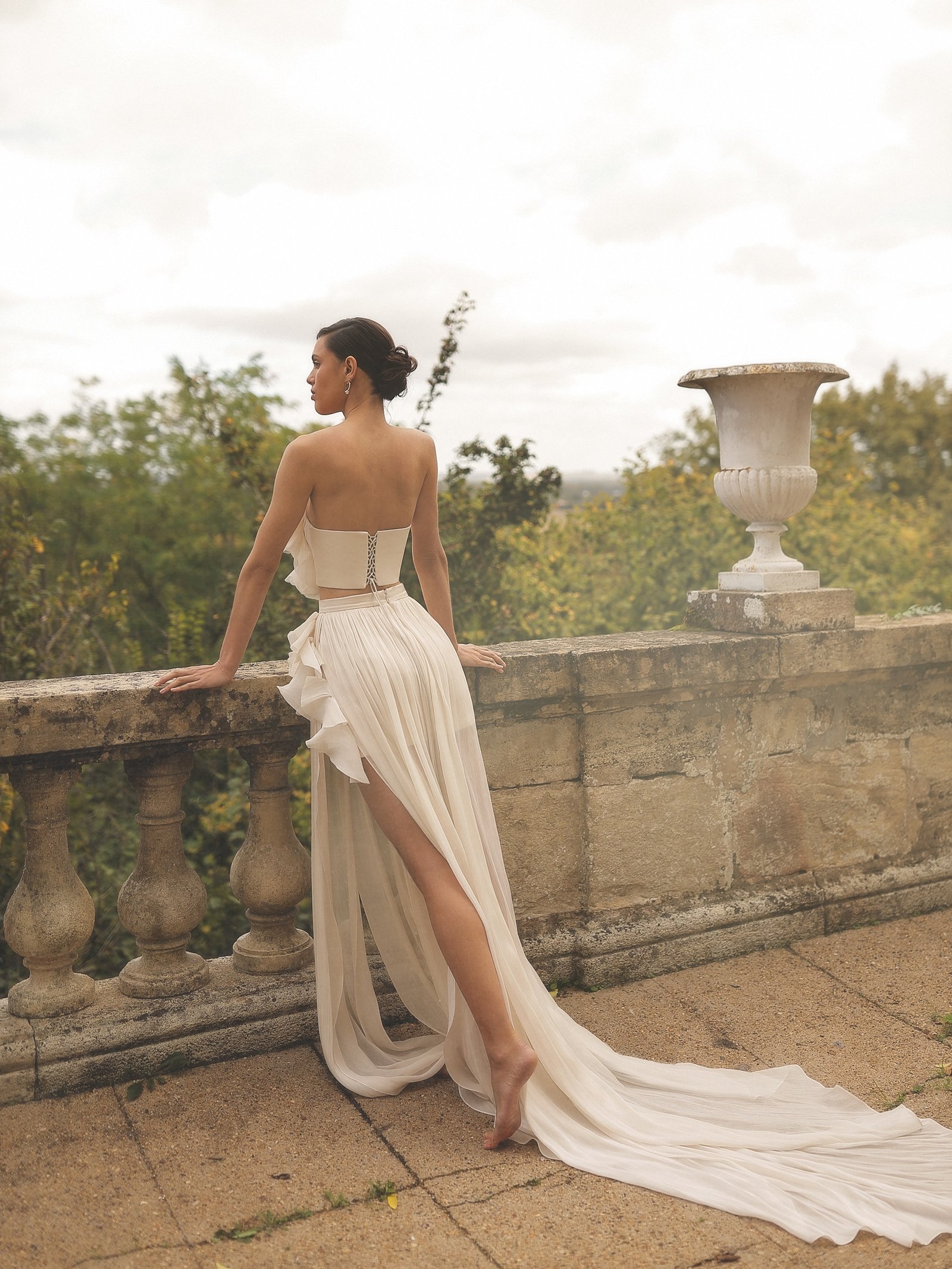 Low back wedding dress «Eira» with slit